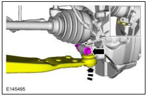 - Use care when releasing the lower arm and wheel knuckle into the resting position or damage to the ball joint seal may occur.