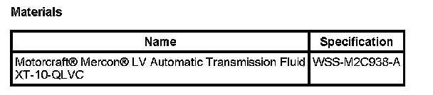 Material: Motorcraft(R) Mercon(R) LV Automatic Transmission Fluid / XT-10-QLVC (WSS-M2C938-A)