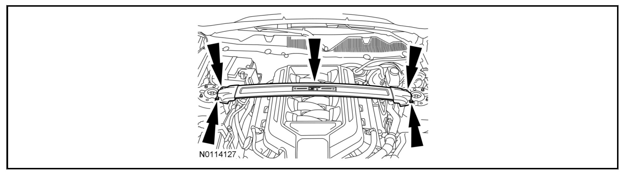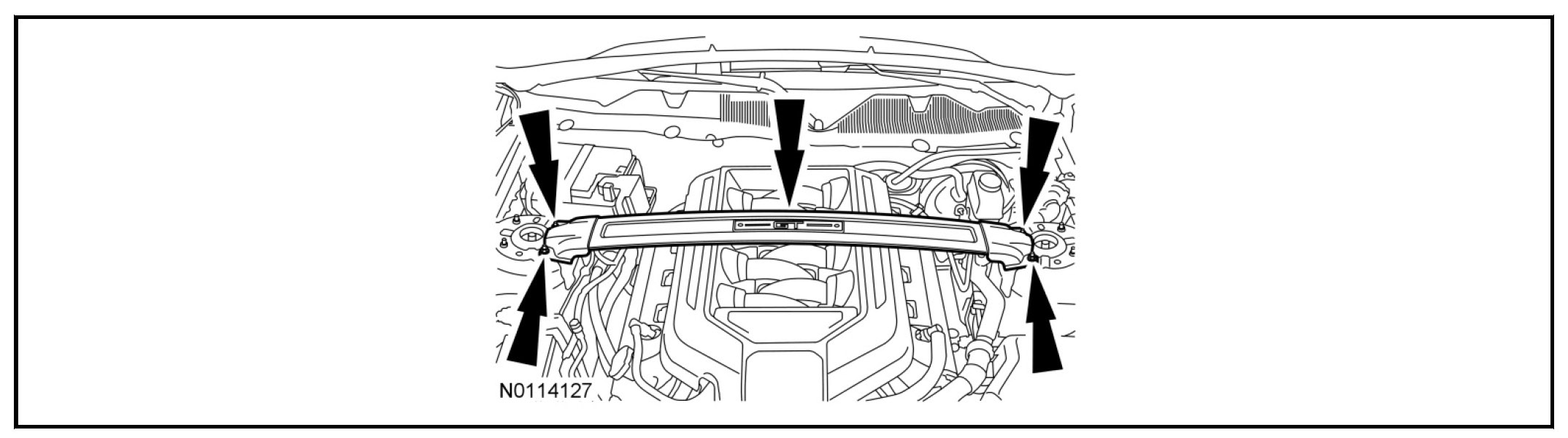 23. If equipped, install the strut tower cross brace and the 4 nuts.