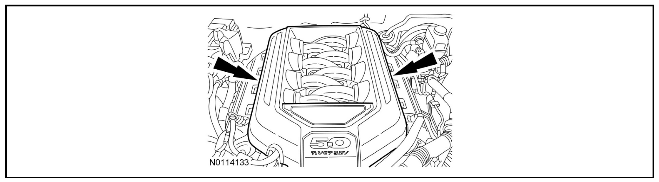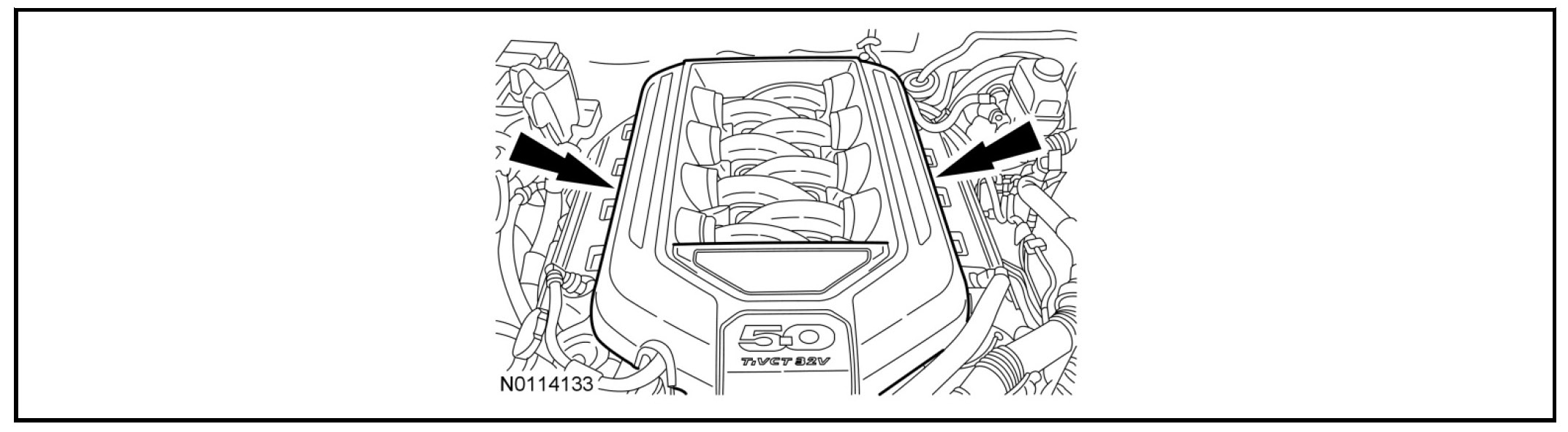 22. NOTE: The engine appearance cover rubber grommets may remain on the cover. If so, remove the grommets from the cover and install them on the intake manifold before installing the cover.