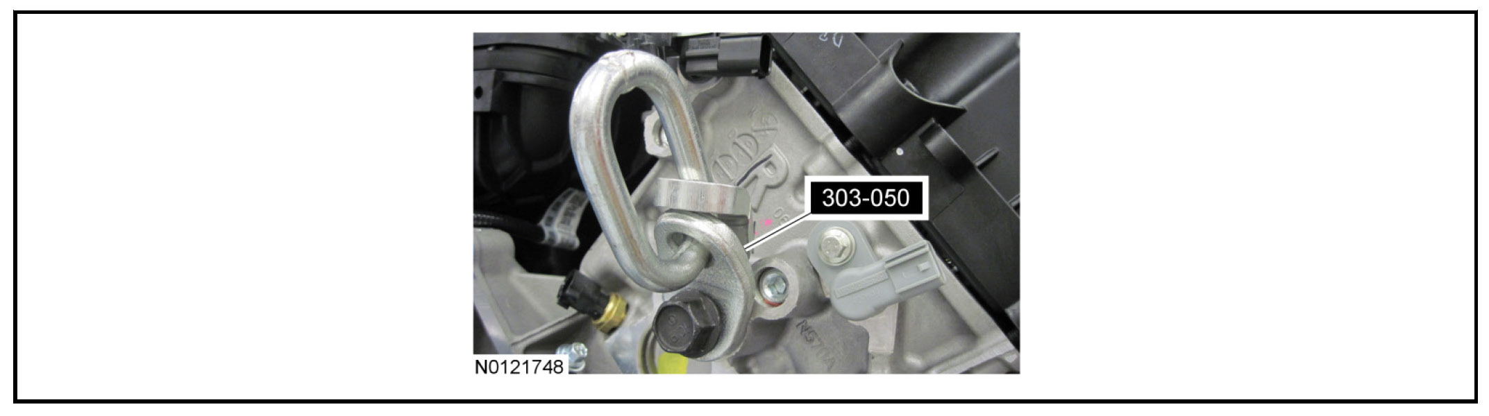 9. NOTE: It may be necessary to install washers between the Engine Lifting Bracket and the cylinder head to prevent the Engine Lifting Bracket from contacting the valve cover while supporting the engine.
