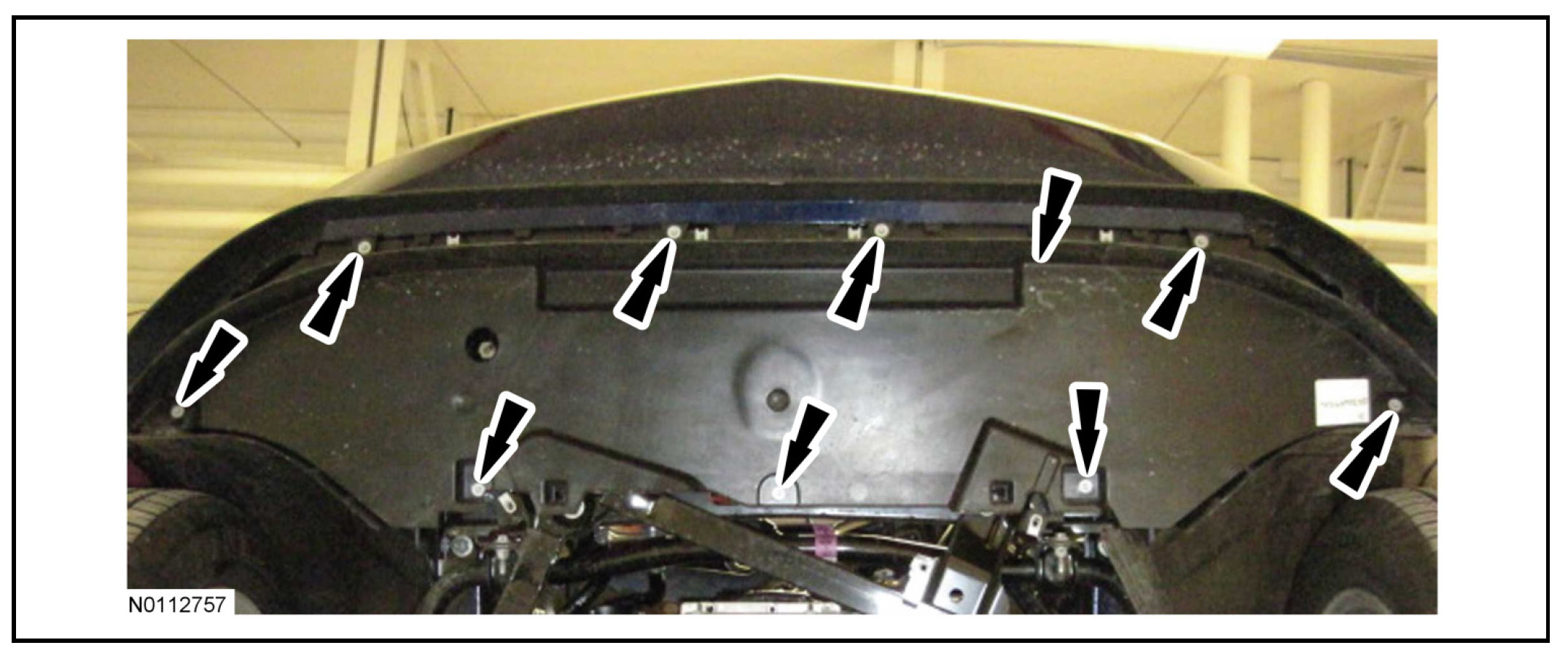 14. Remove the 9 bolts and the lower air deflector.