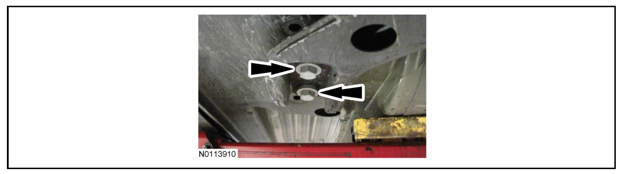 4. Use a suitable alignment tool with a 15 mm (0.59 in) OD shaft that is long enough to go through the subframe and body.