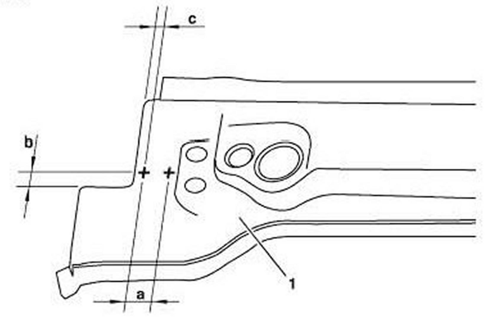 1. Carefully grind remaining sheet metal (5) off of A-pillar inner section (4).