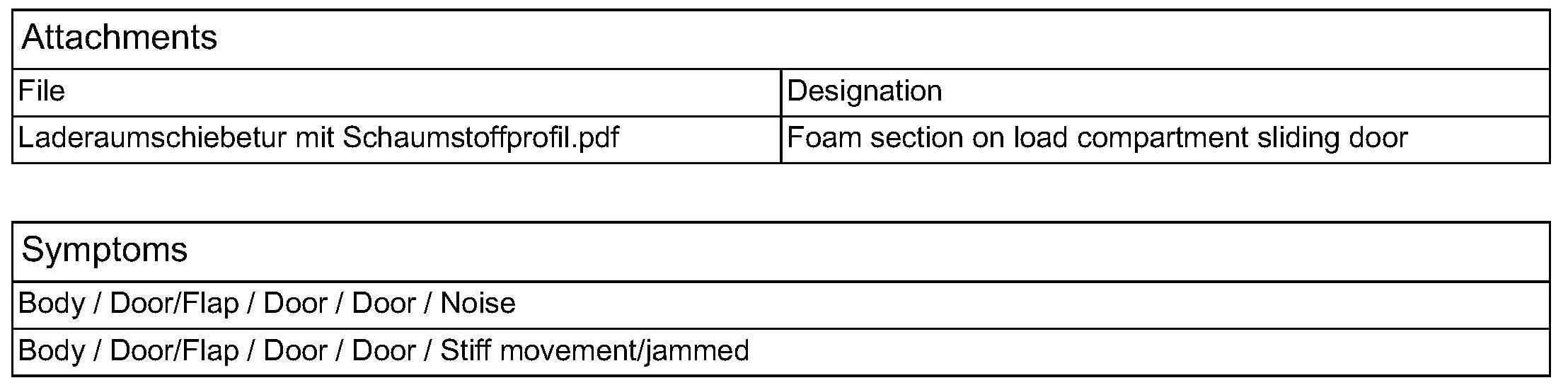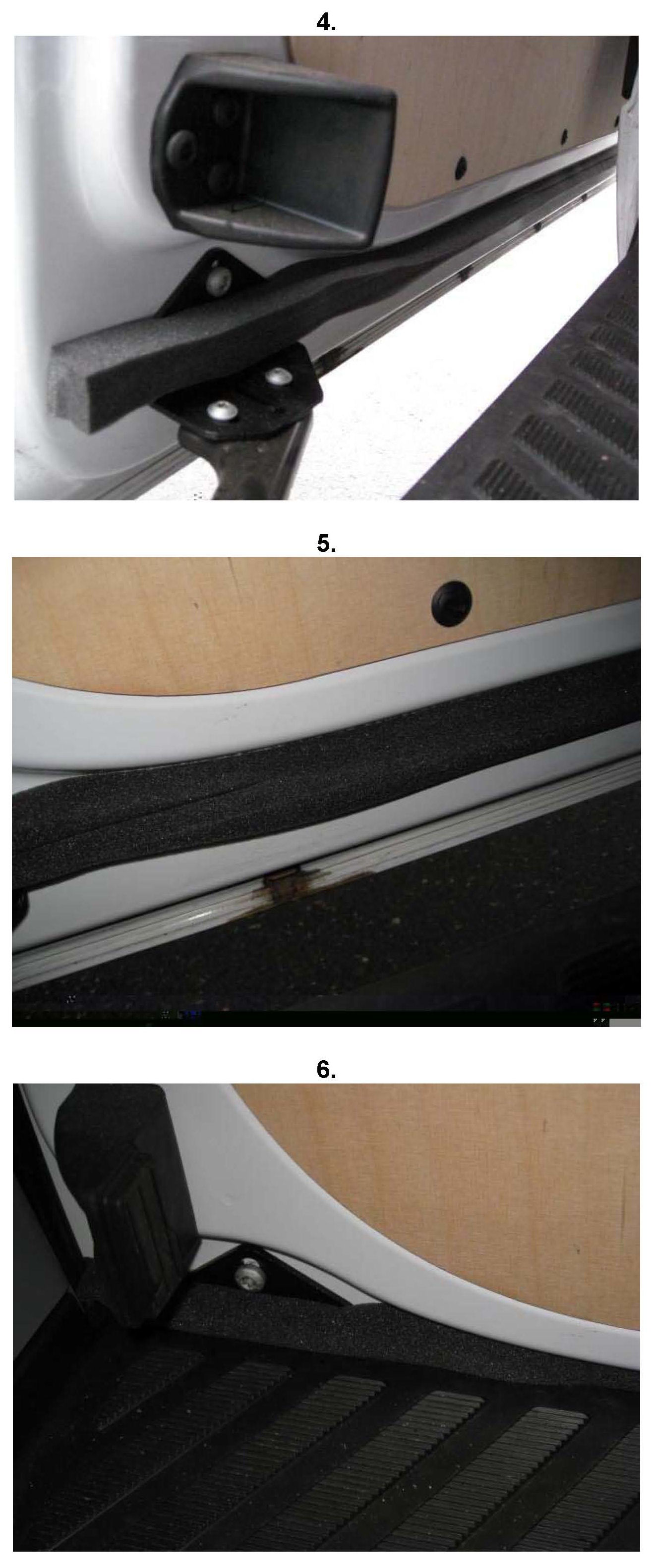 In order to minimize the amount of dirt entering the area of the load compartment sliding door cable track and to avoid damage to the cable track, a foam section should be glued onto the load compartment sliding door (see attachment). The length of the foam section should be made to fit the width of the load compartment sliding door.