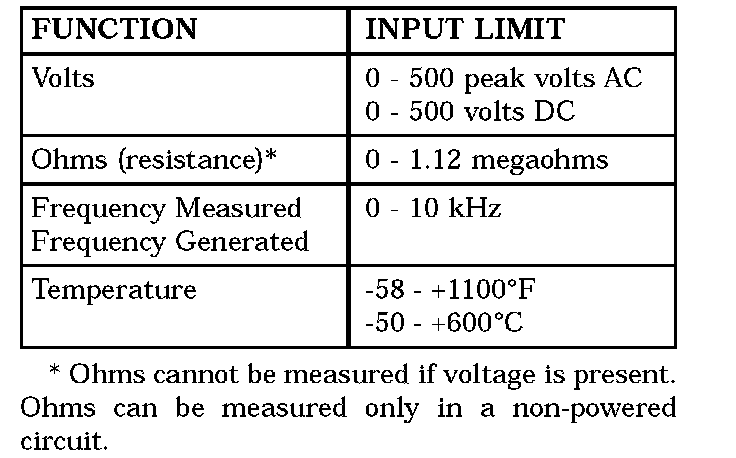 DRBIII SAFETY INFORMATIONWARNING: EXCEEDING THE LIMITS OF THE DRBIII MULTIMETER IS DANGEROUS. IT CAN EXPOSE YOU TO SERIOUS OR POSSIBLE FATAL INJURY. CAREFULLY READ AND UNDERSTAND THE CAUTIONS AND THE SPECIFICATION LIMITS.