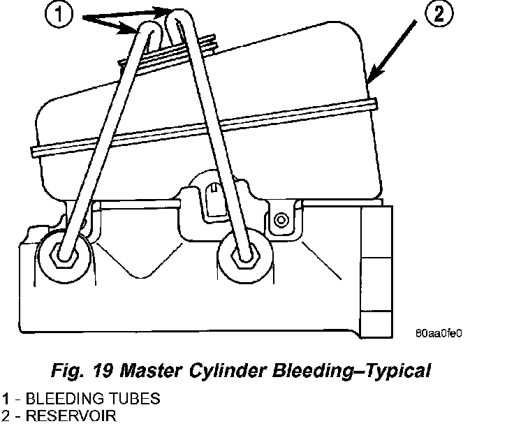 2. Attach bleed tubes to cylinder outlet ports. Then position each tube end into reservoir (Fig. 19).