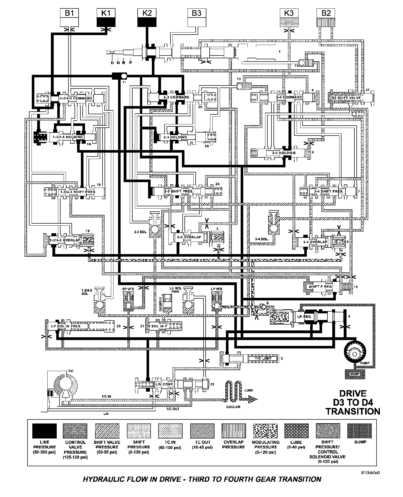 HYDRAULIC FLOW IN DRIVE - THIRD TO FOURTH GEAR TRANSITION