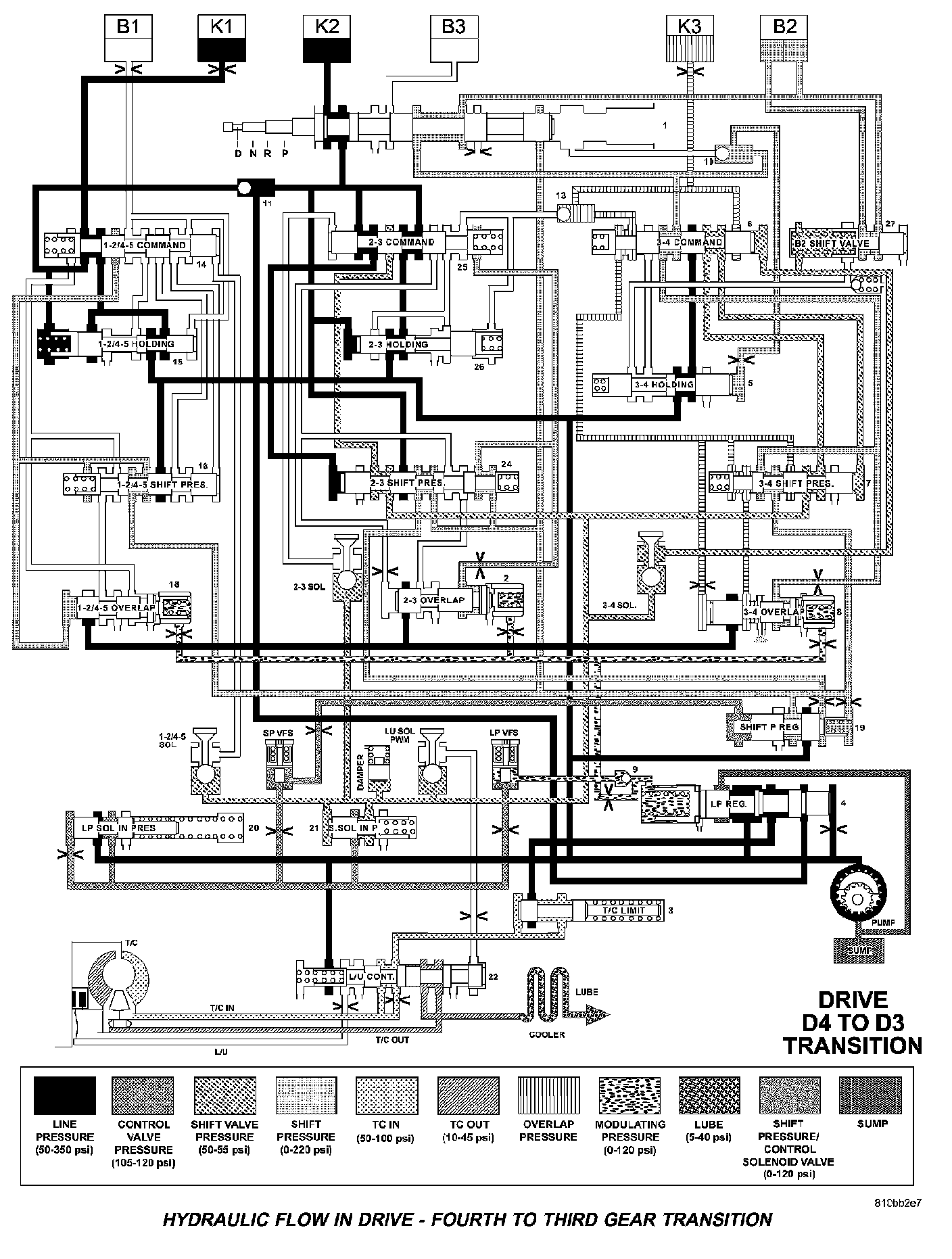 HYDRAULIC FLOW IN DRIVE - FOURTH TO THIRD GEAR TRANSITION