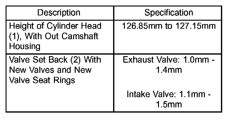 NOTE: If measurement is less than dimension "2" no further correct valve clearance compensation is possible; replace valve seat ring or cylinder head if measurement is greater than specification.