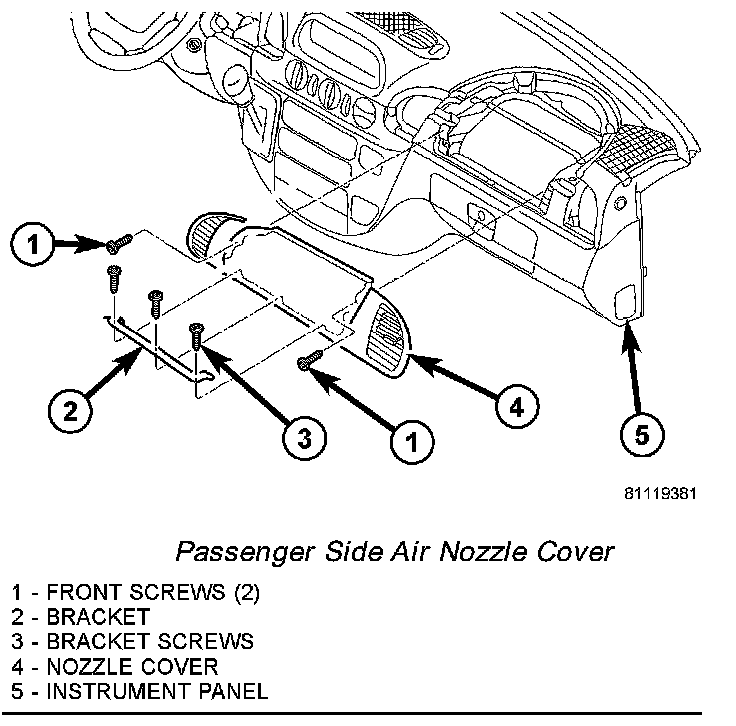 3. If servicing the passenger side air outlets, remove the passenger side airbag.