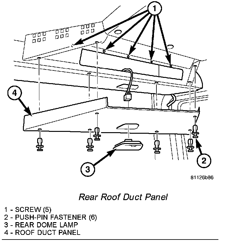 4. Remove the six push-pin roof duct panel fasteners and remove the duct panel from the vehicle.