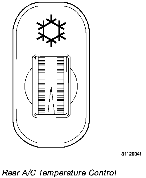 The optional rear heater-A/C unit output temperature is controlled by a thumbwheel-type control, mounted in the switch panel on the instrument panel. The temperature control allows the selection of four temperature settings when the A/C switch on the front A/C-heater control and the rear A/C blower motor is activated.