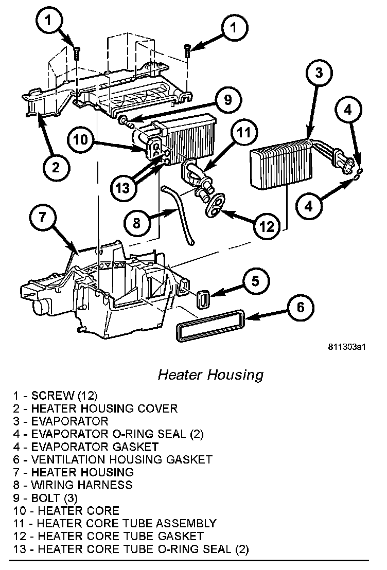 1. Install the evaporator core into the heater housing.