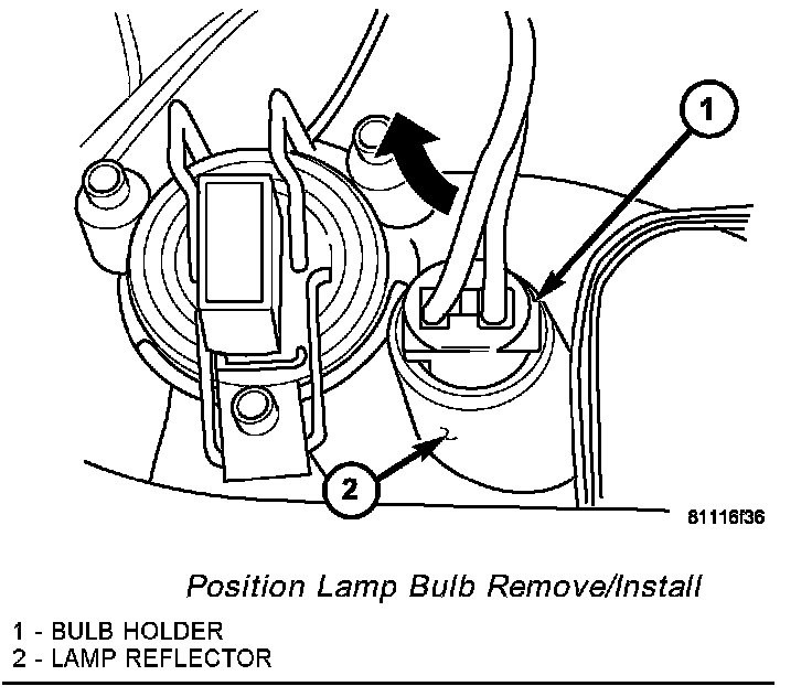 2. Push the position lamp bulb holder straight into the mounting hole in the front lamp unit reflector.
