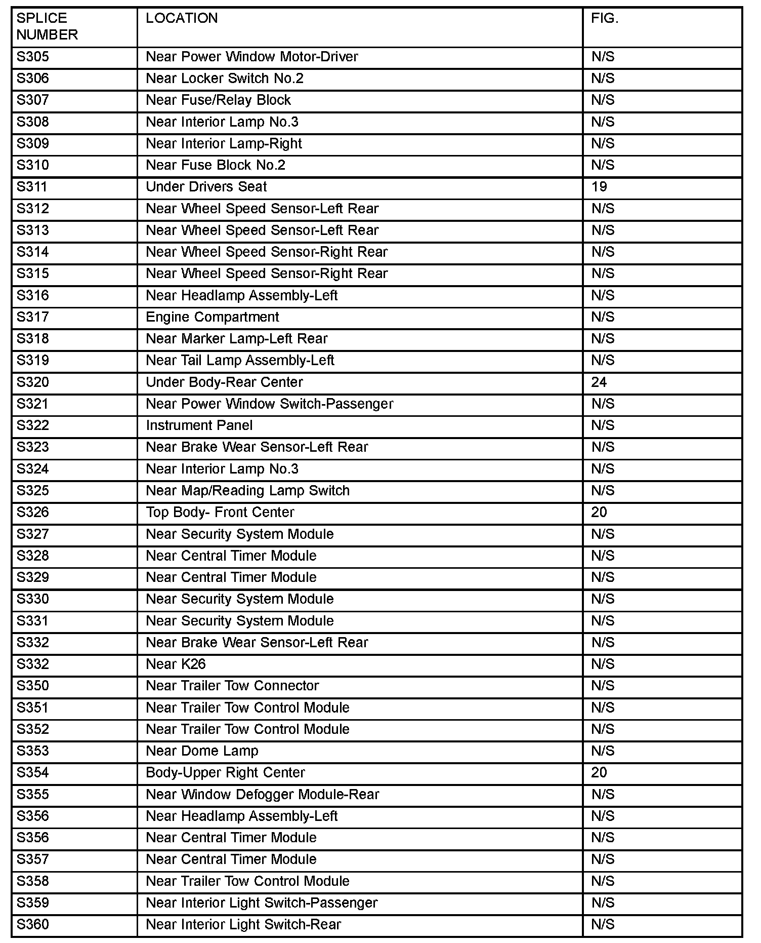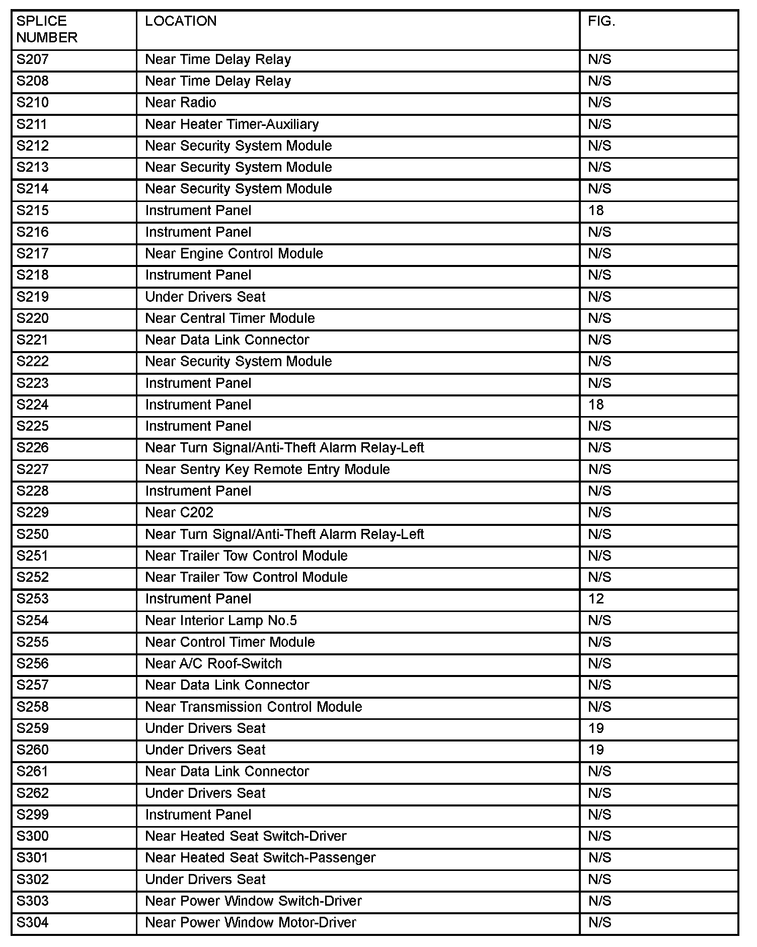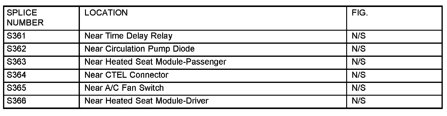 The abbreviation N/S means Not Shown in the illustrations.