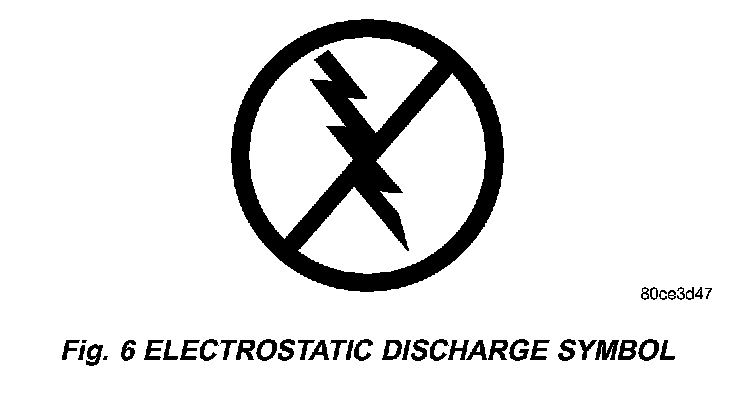 All ESD sensitive components are solid state and a symbol (Fig. 6) is used to indicate this. When handling any component with this symbol, comply with the following procedures to reduce the possibility of electrostatic charge build up on the body and inadvertent discharge into the component. If it is not known whether the part is ESD sensitive, assume that it is.