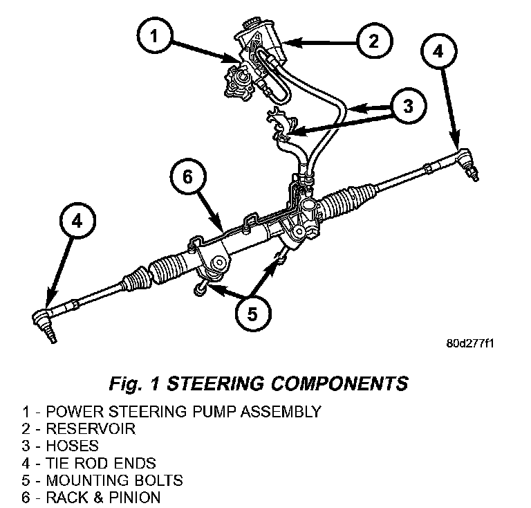 The steering column shaft is attached to the gear pinion. The rotation of the pinion moves the gear rack from side-to-side. This lateral action of the rack pushes and pulls the tie rods to change the direction of the front wheels (Fig. 1).