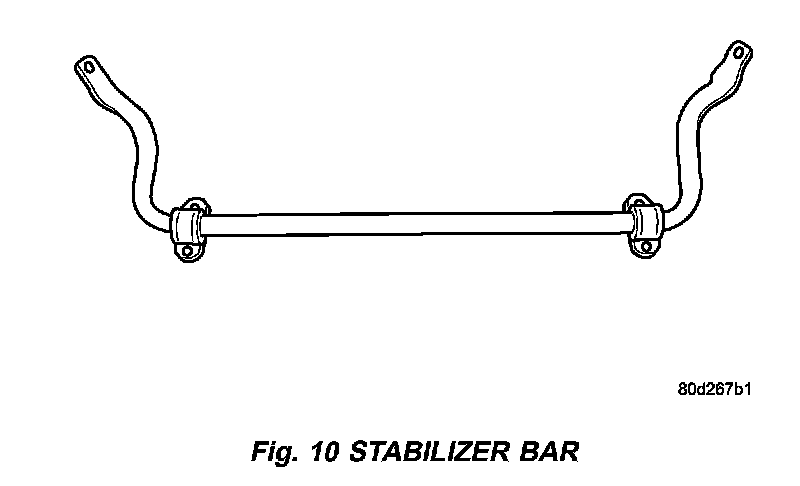 The bar extends across the front underside of the chassis and connects to the frame crossmember. The ends of the bar mount to the lower suspension arm. All mounting points of the stabilizer bar are isolated by bushings (Fig. 10).