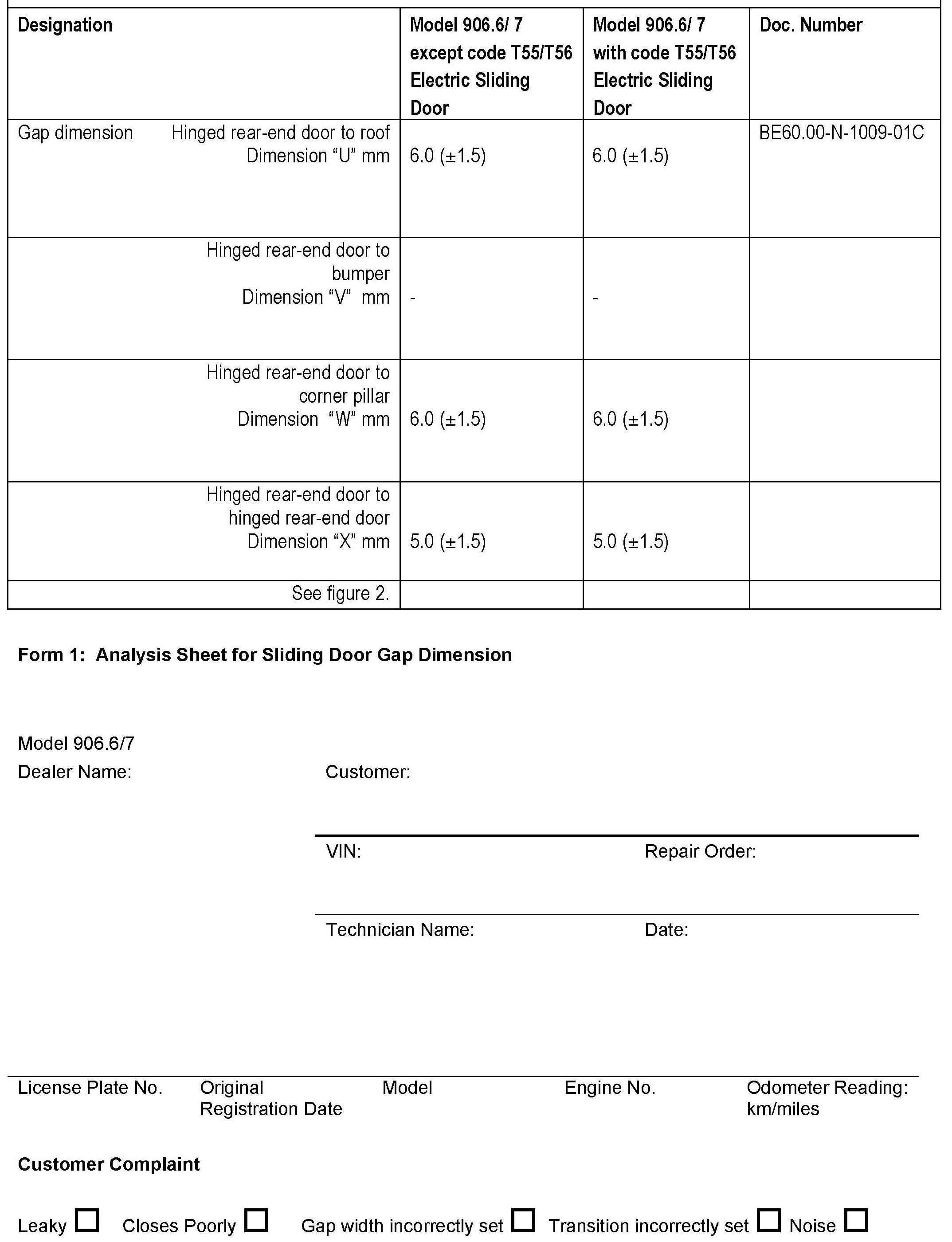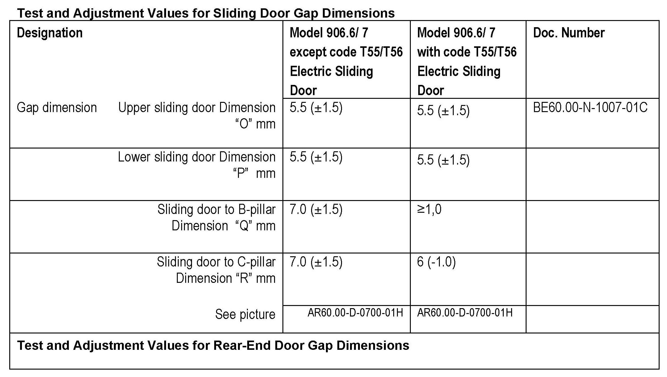 Body - Gap Dimensions On Sliding And Rear-End Door