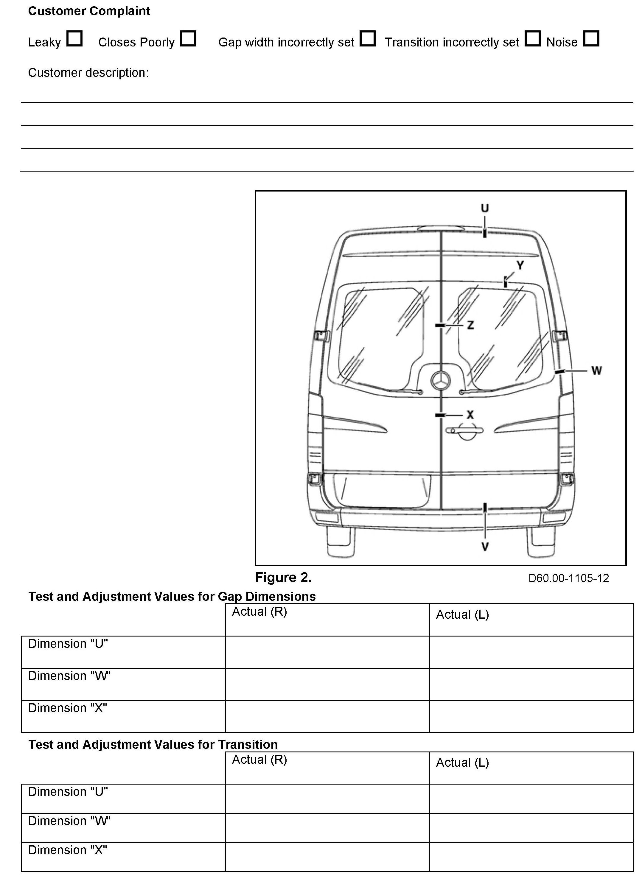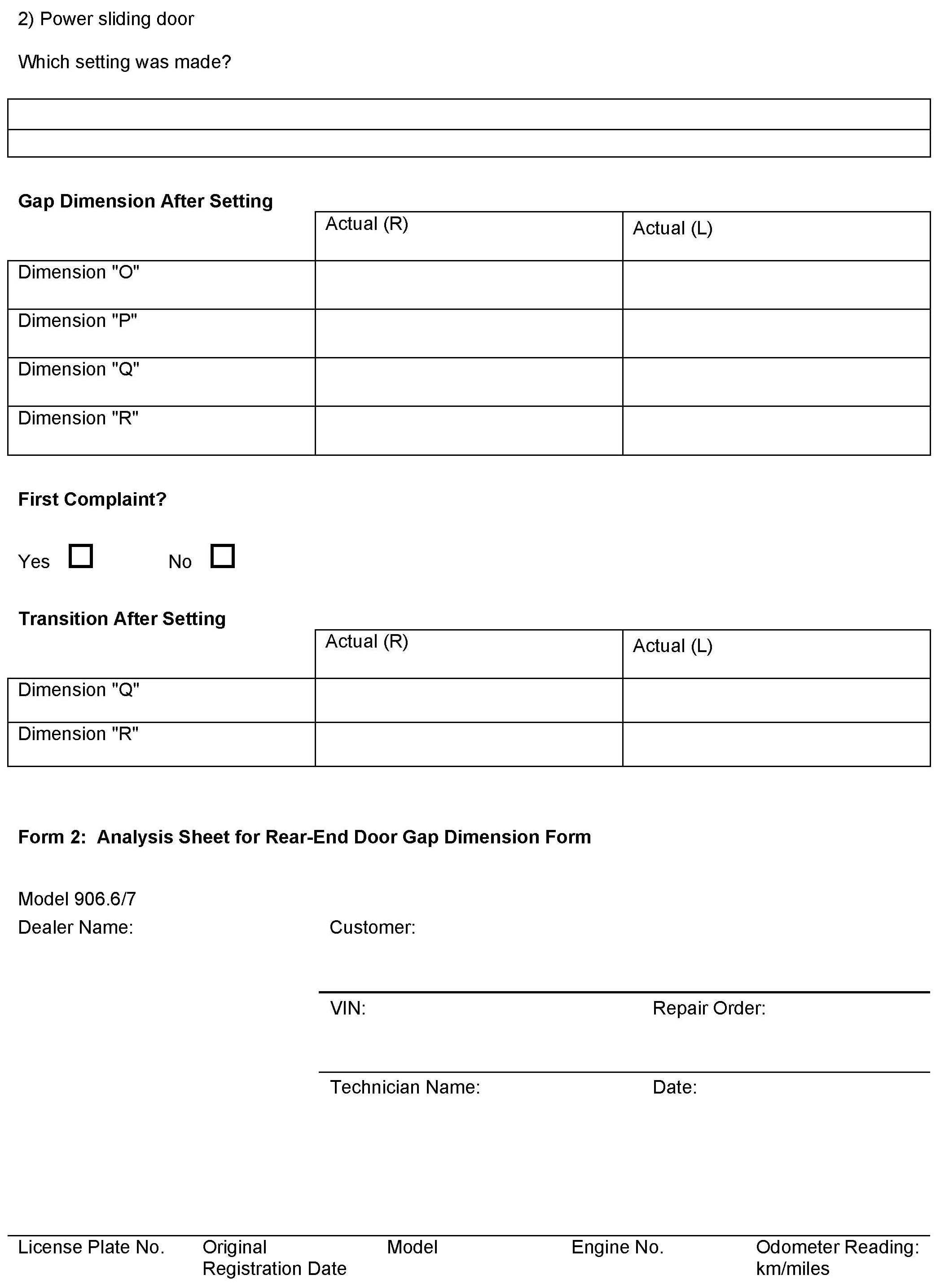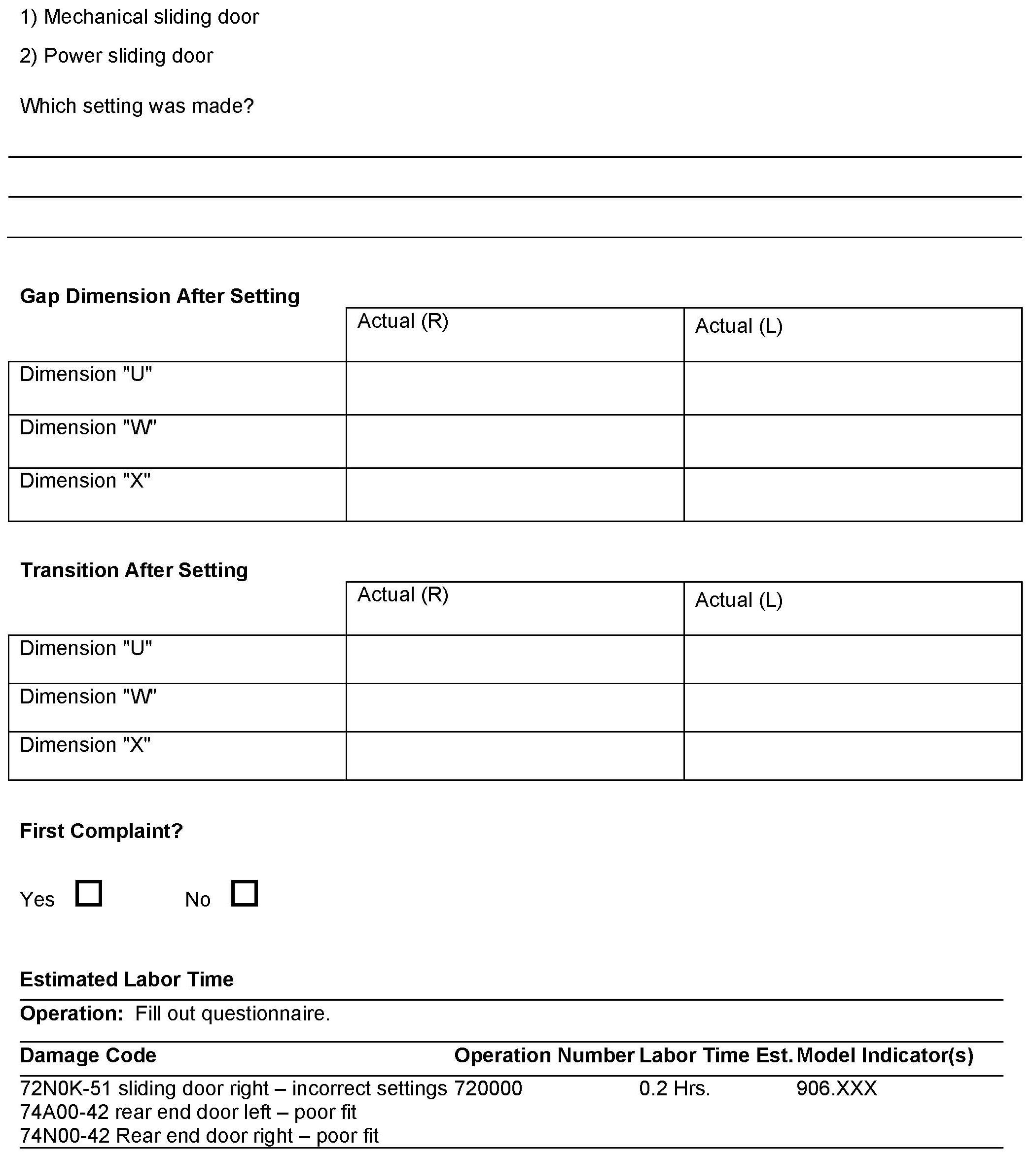 If adjustments are made to sliding and rear-end doors on this model, the below forms must be including in a warranty claim.