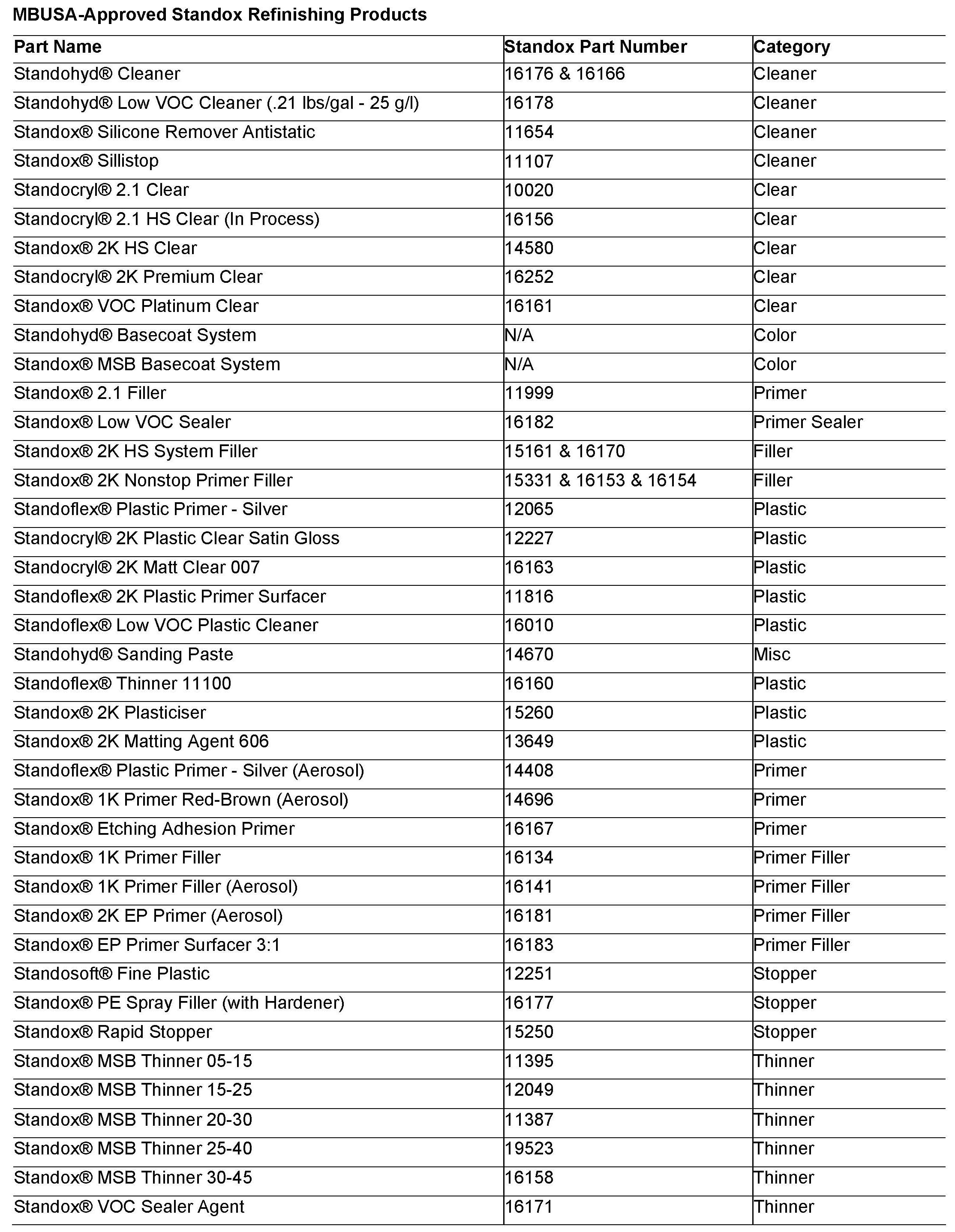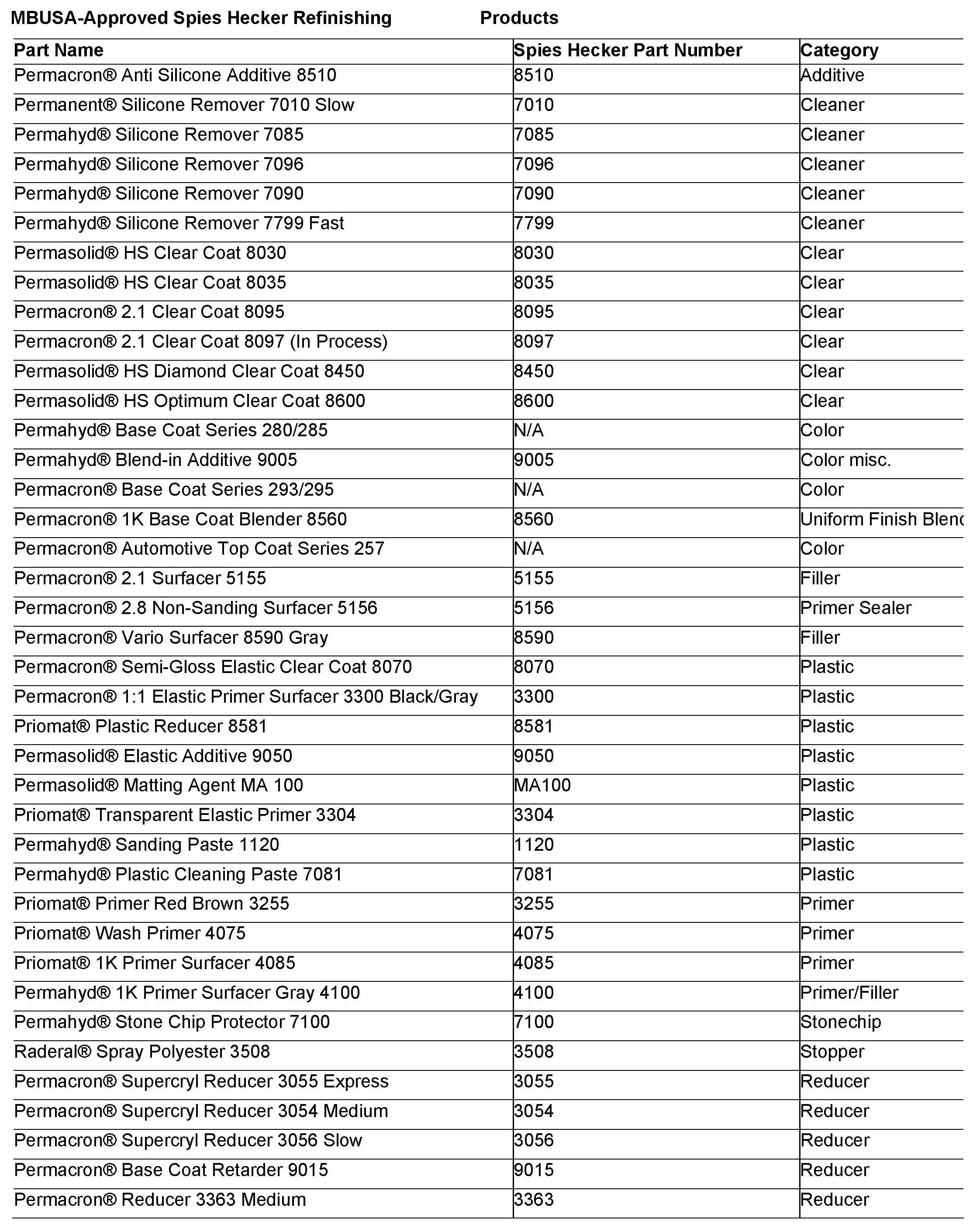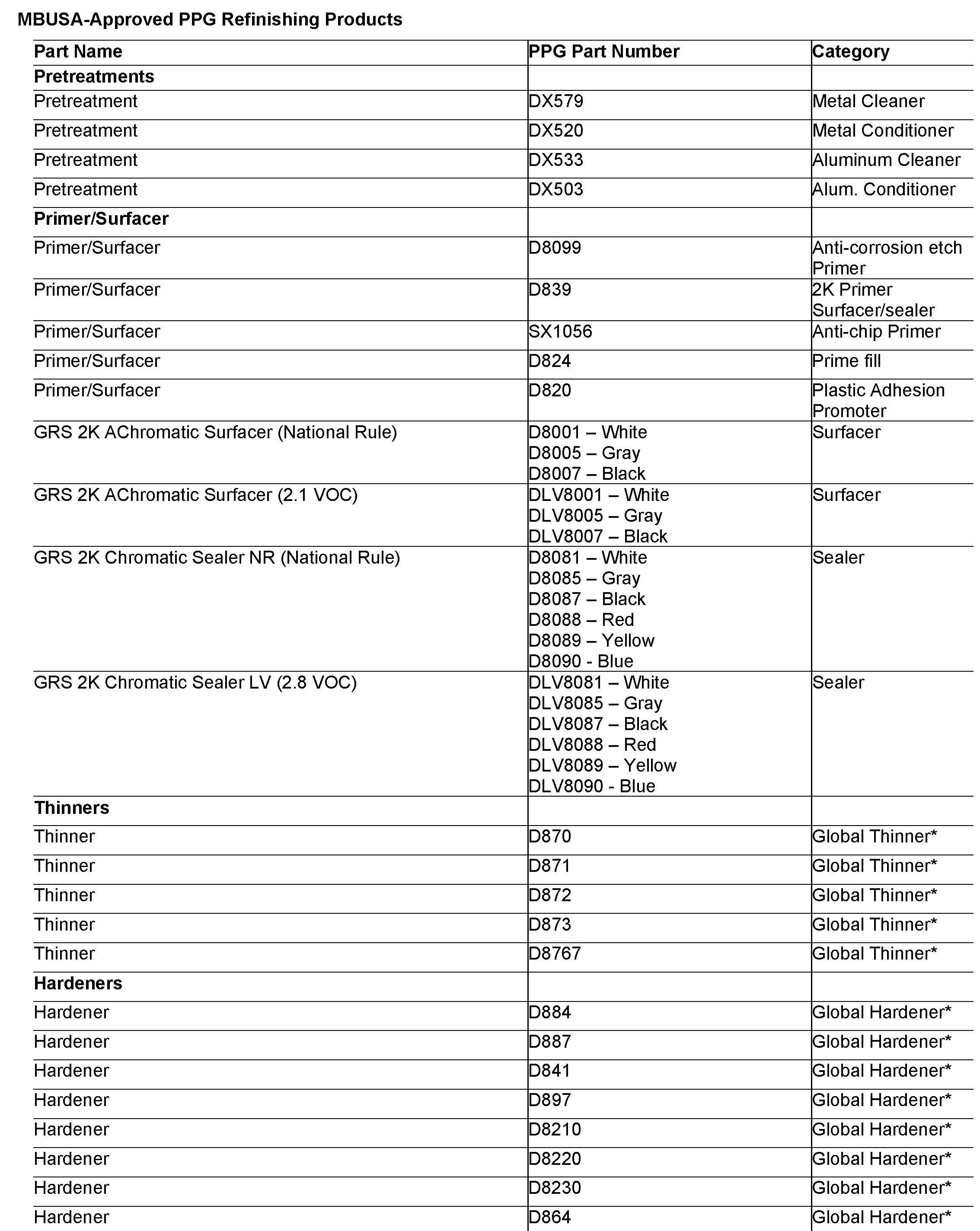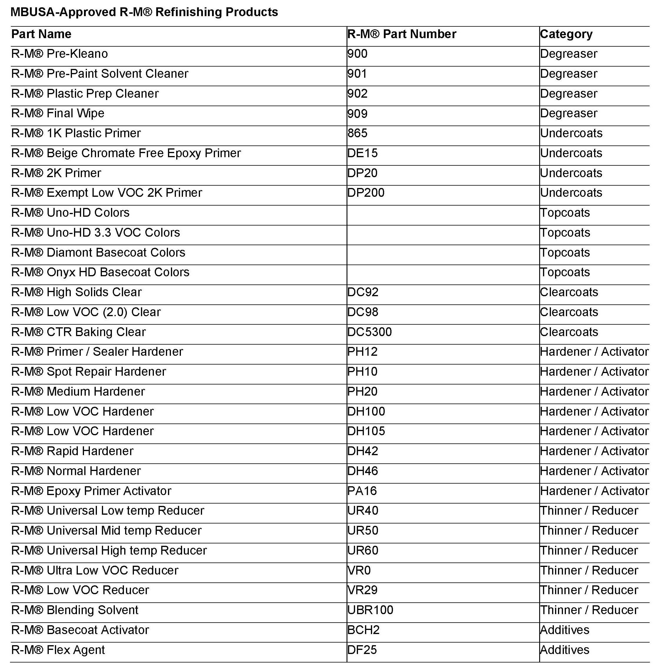 Body/Paint - MBUSA Approved Refinishing Products For Sprinter