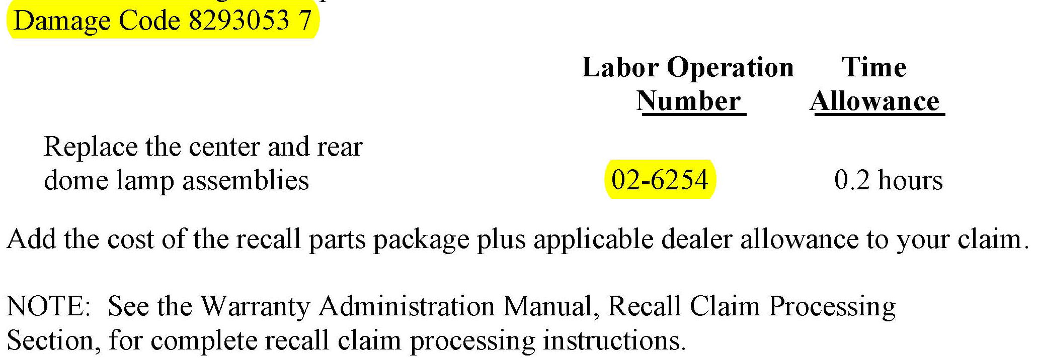 Use the labor operation number and time allowance shown.
