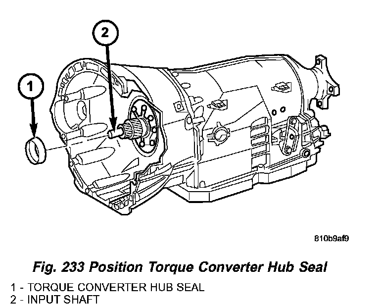 1. Position the torque converter hub seal (Fig. 233) over the input shaft and against the transmission oil pump.