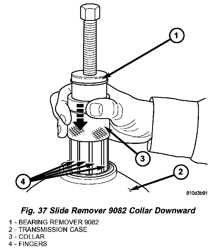 14. Slide the collar (Fig. 37) on the Bearing Remover 9082 downward over the fingers of the tool.