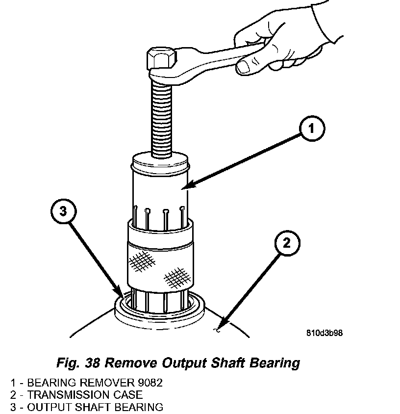 15. Remove the output shaft bearing (Fig. 38).