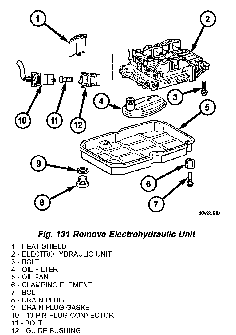5. Install oil pan (5) (Fig. 131) and torque the oil pan bolts to (8 Nm (71 inch lbs.).