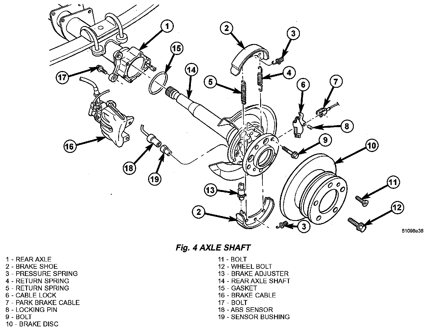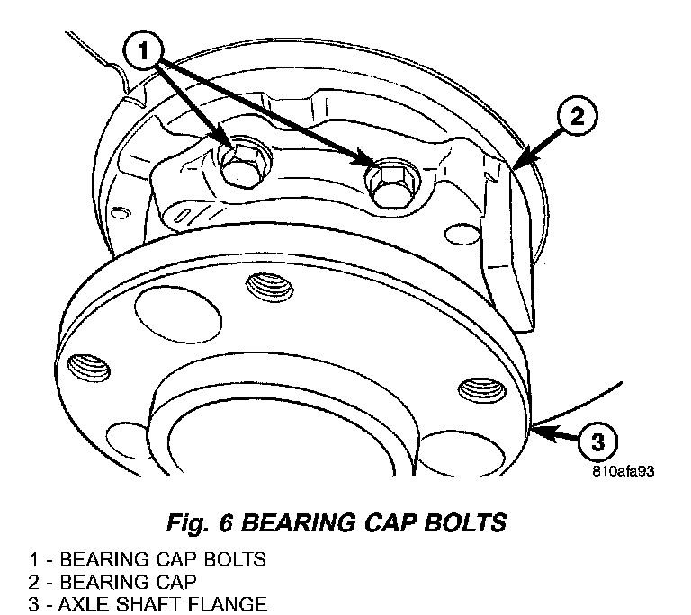 7. Remove bearing cap bolts and pull axle shaft out of axle tube (Fig. 4).