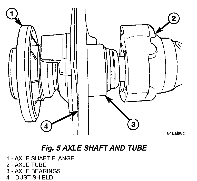 2. Install rear axle shaft in the axle tube (Fig. 5).