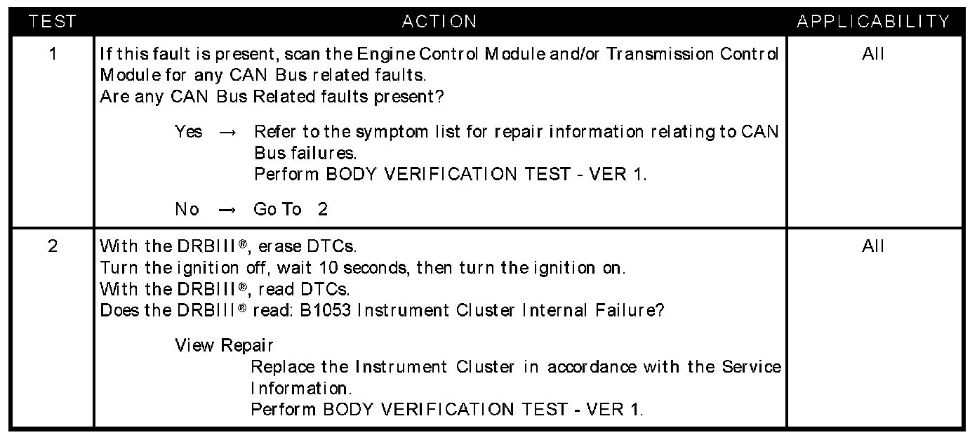 INSTRUMENT CLUSTER INTERNAL FAILURE B1053