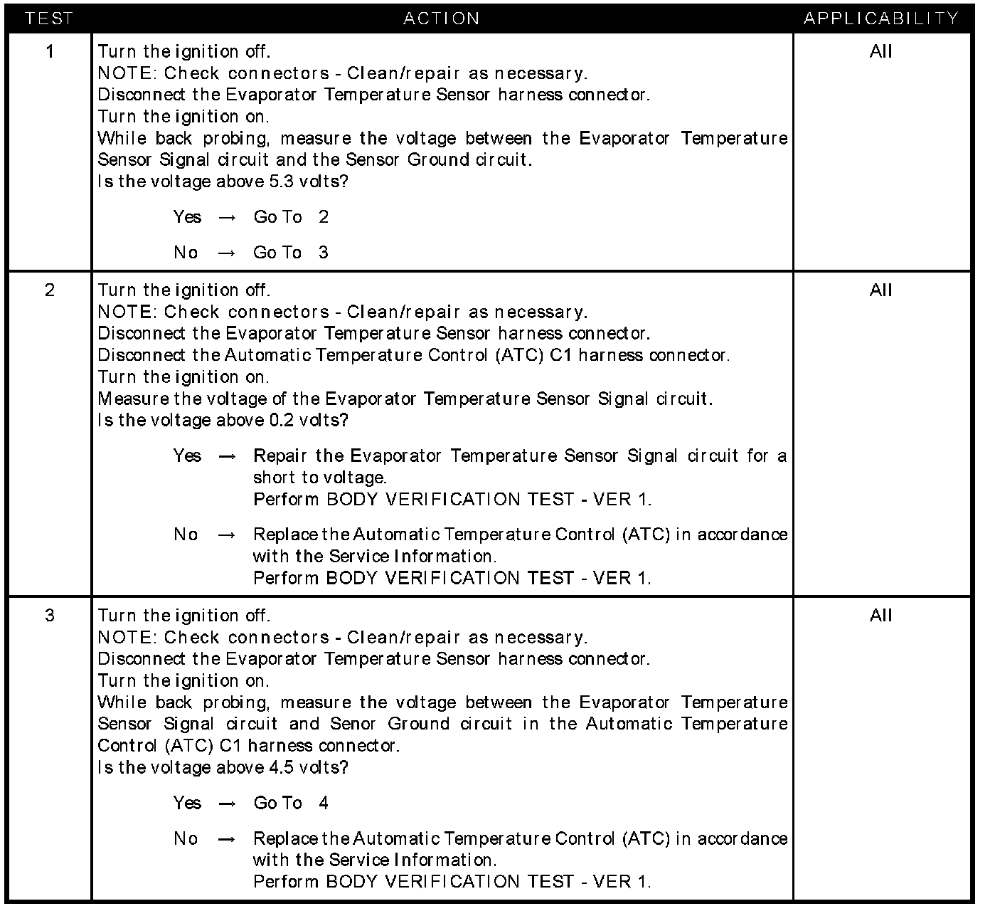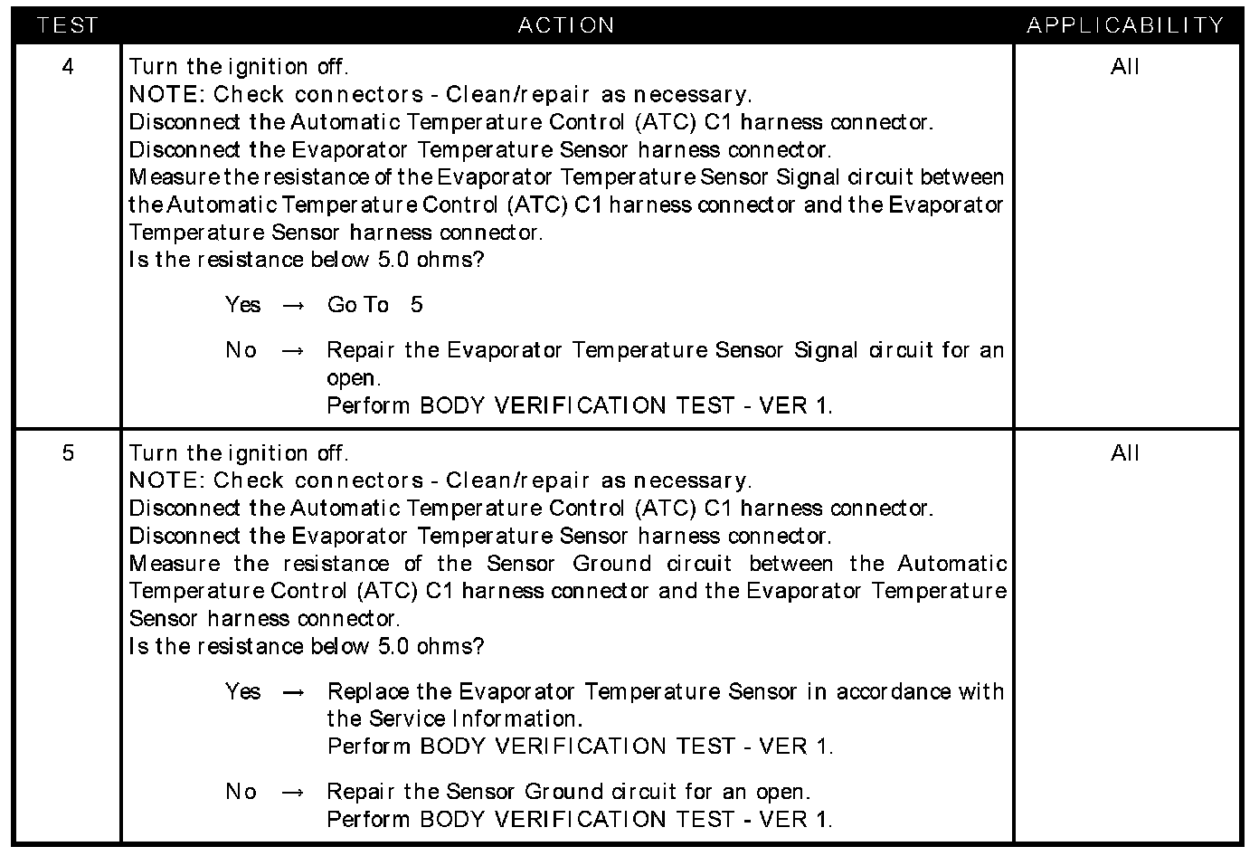 - Evaporator temperature sensor signal circuit shorted to voltage