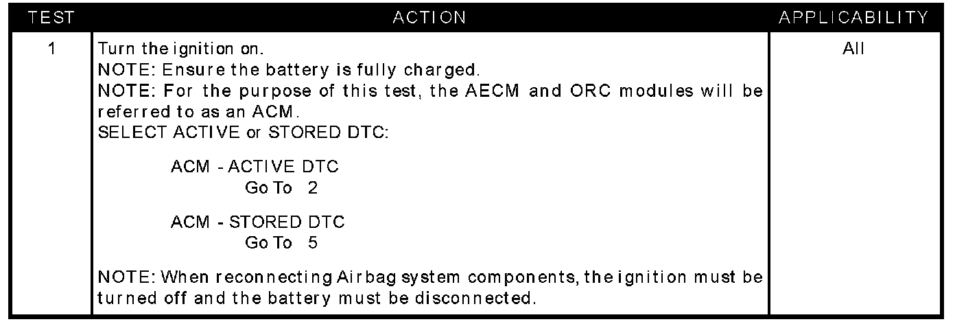 With the ignition on, the ACM monitors the resistance of the Passenger Squib 1 circuits.