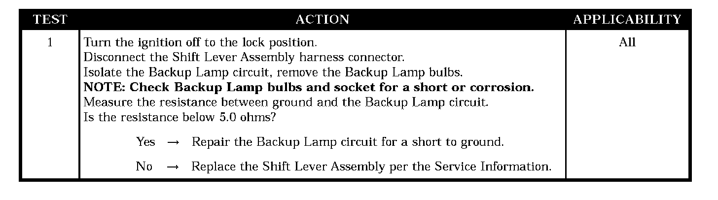 BACKUP LAMP CIRCUIT SHORT TO GROUND