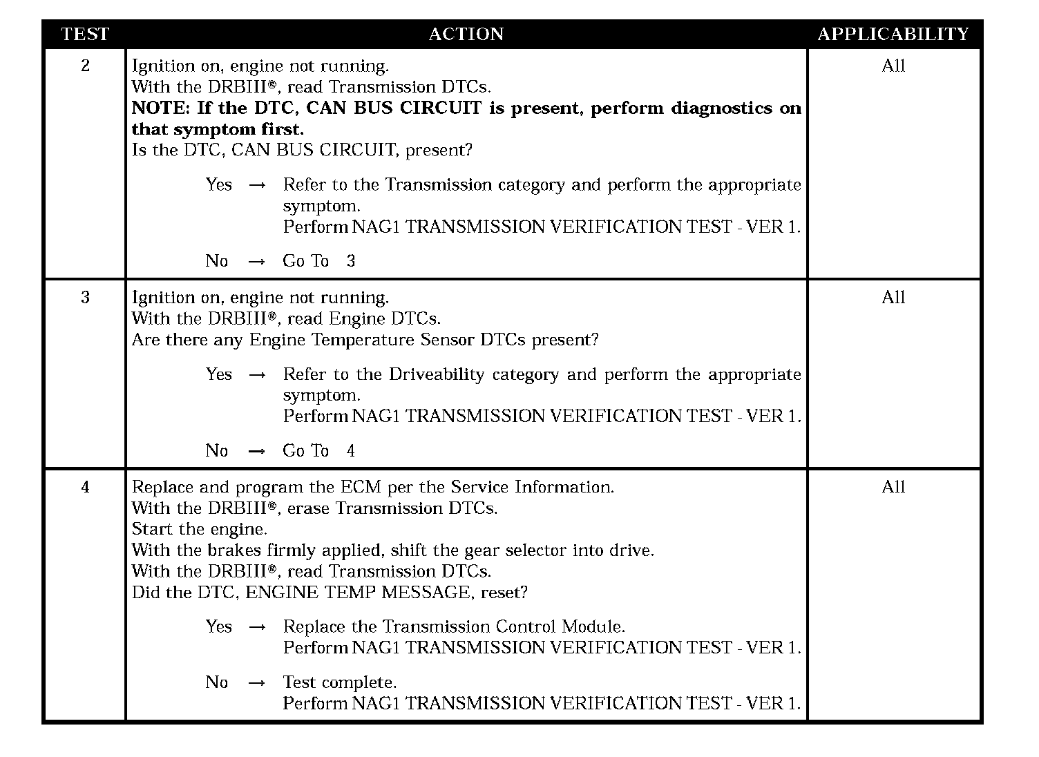 When Monitored: Valid Engine Temp CAN message received at least once and CAN Bus Circuit error, Engine CAN Message Missing and Engine CAN Messages Incorrect are not active.