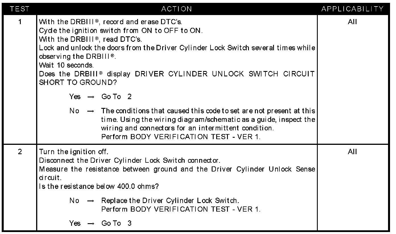 DRIVER CYLINDER UNLOCK SWITCH CIRCUIT SHORT TO GROUND