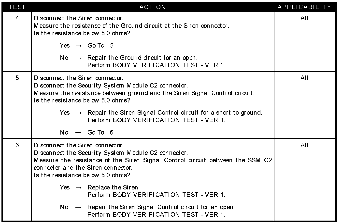 SIREN CIRCUIT OPEN/SHORTED TO GROUND