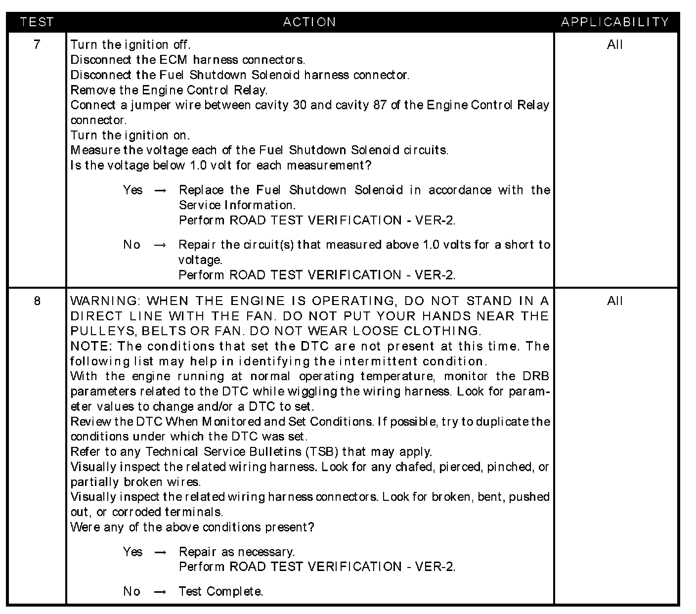 - Fuel shutdown solenoid circuit(s) shorted to voltage