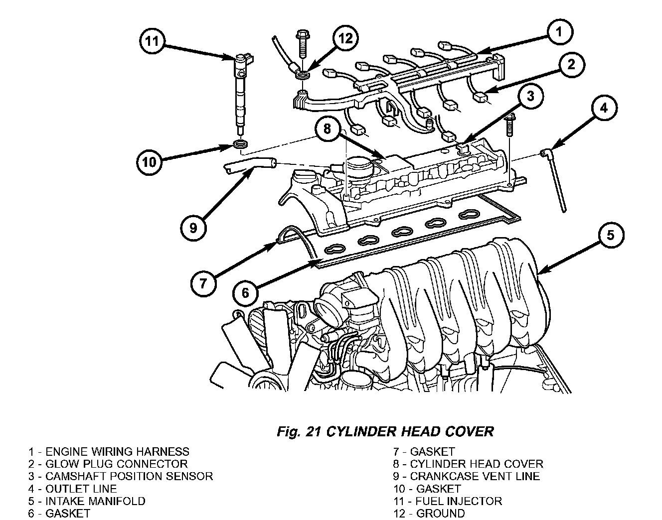 1. Fit cylinder head cover with new gasket and install bolts (Fig. 21).
