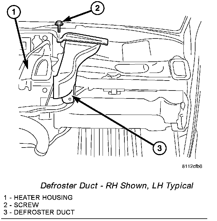 Defroster Duct - RH Shown, LH Typical: