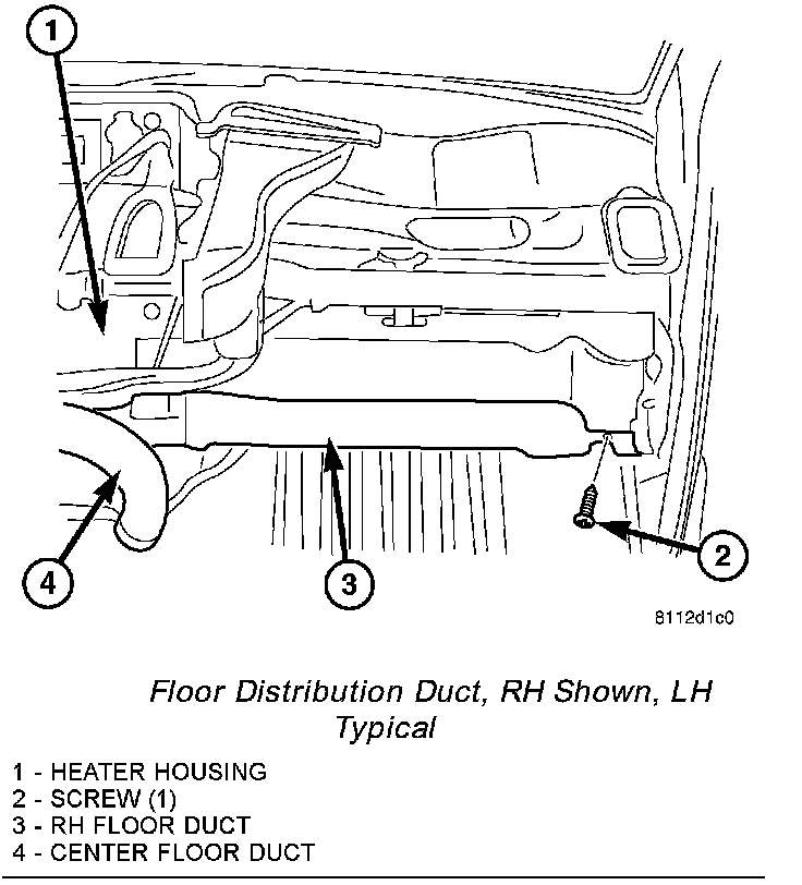4. Install the left and right floor distribution duct retaining screws to the instrument panel support. Tighten the screws to 2 N.m (17 in. lbs.).