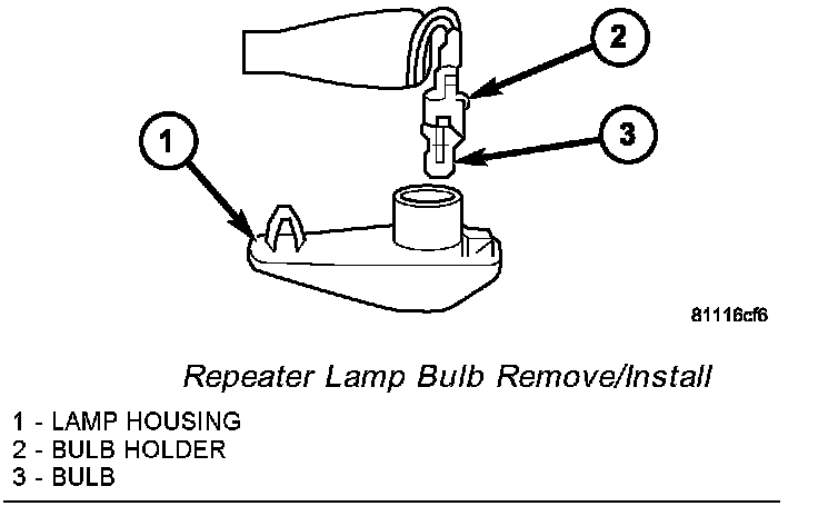 2. Remove the repeater lamp unit from its mounting location, but do not disconnect it from the vehicle wire harness.