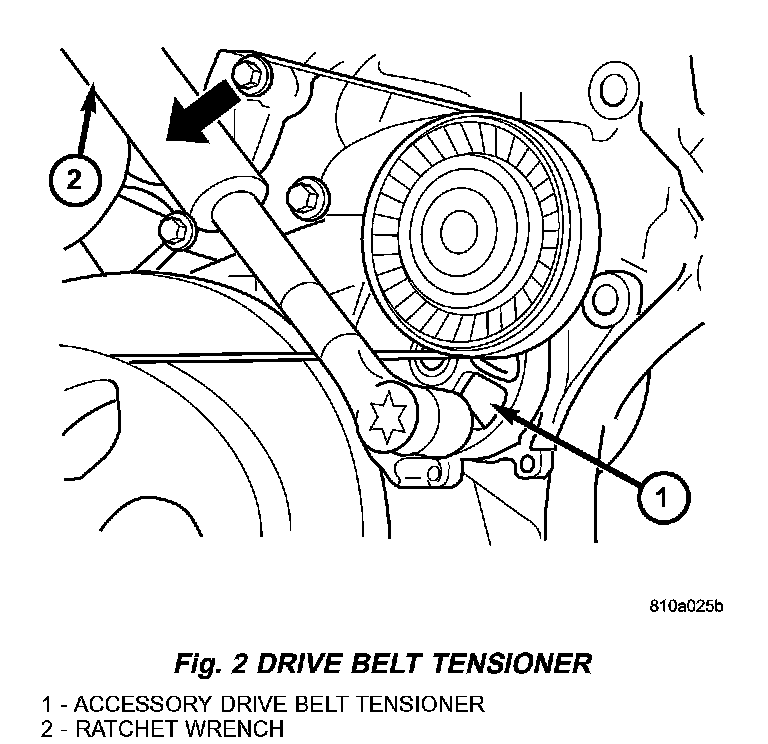 3. Rotate ratchet and tensioner assembly counterclockwise (as viewed from front) until tension has been relieved from belt.