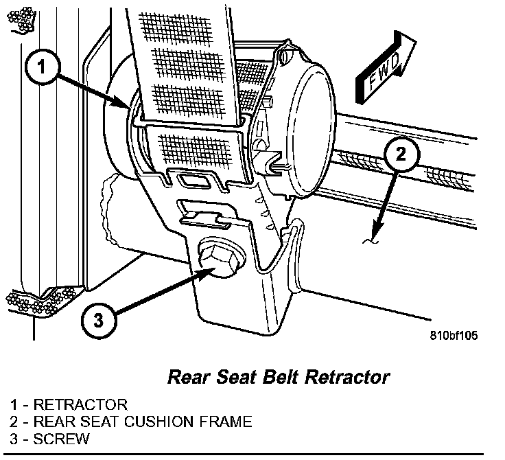 1. Remove the rear bench seat containing the rear seat belt and retractor unit to be serviced from the vehicle.