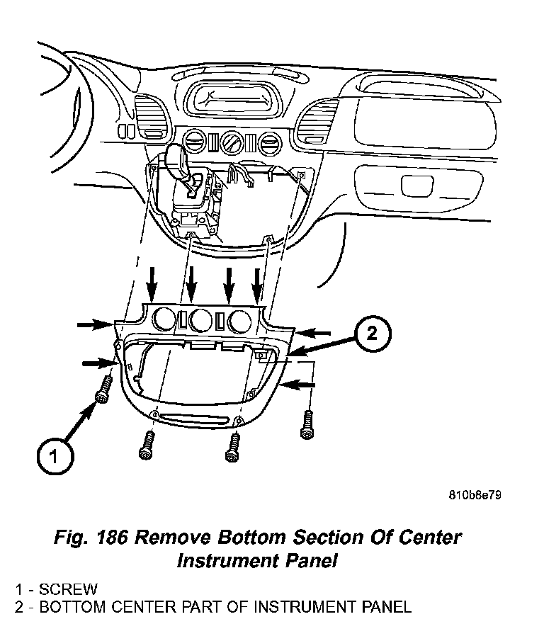 4. Remove bottom (2) (Fig. 186) center of instrument panel.