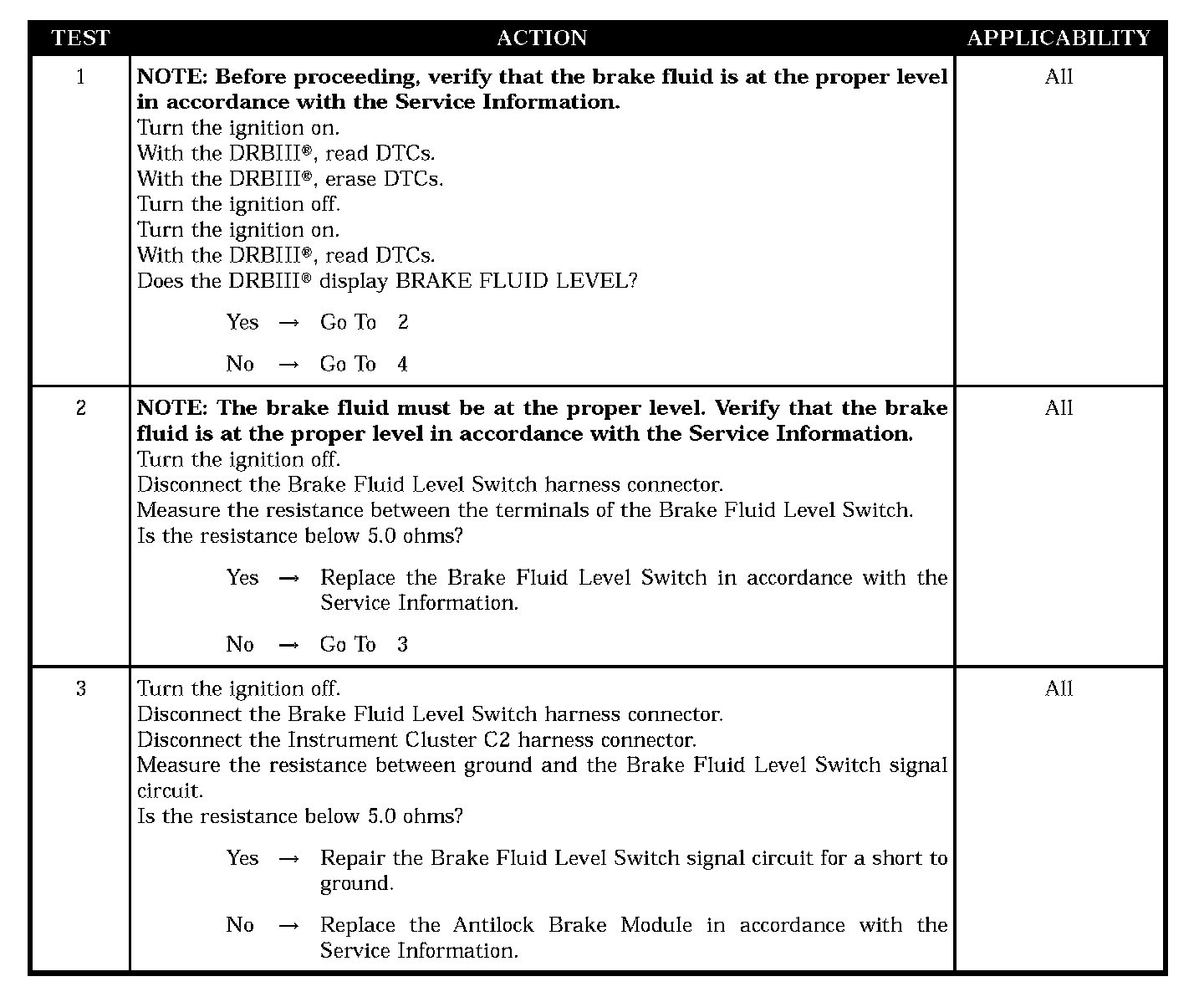 BRAKE FLUID LEVEL SWITCH SIGNAL CIRCUIT SHORT TO GROUND