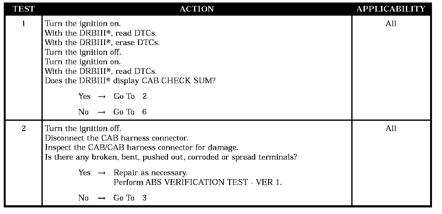 Symptom:CAB CHECK SUM
